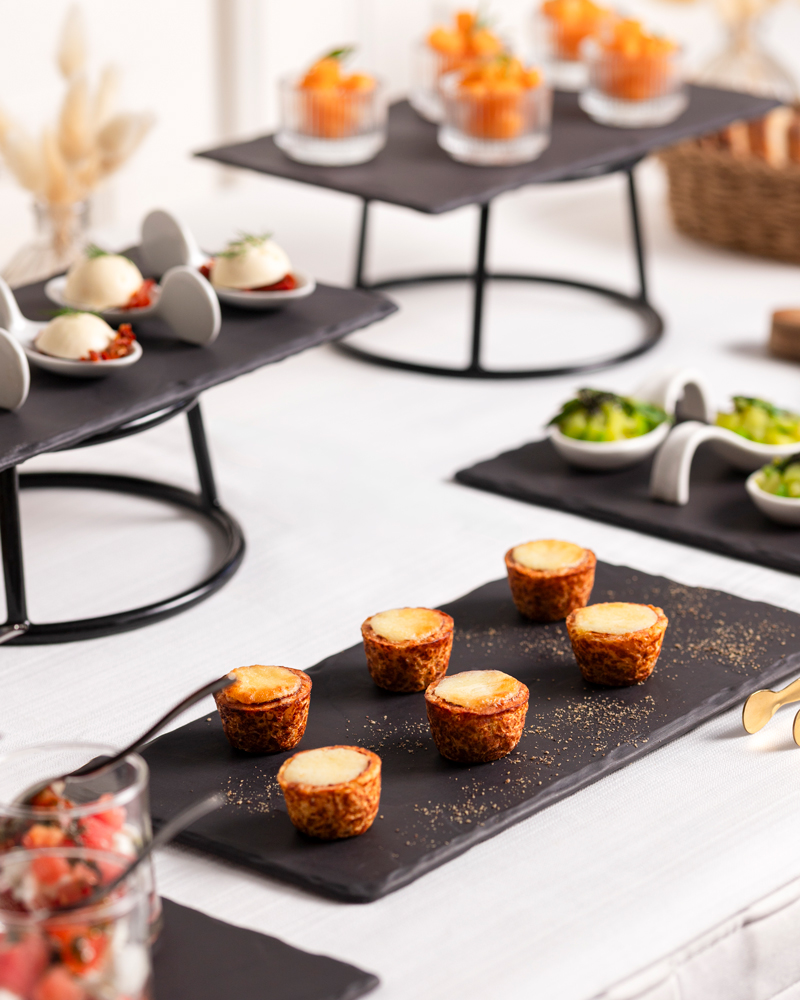 Pataclette®, c’est une bouchée généreuse qui allie le fondant du fromage et le croustillant de la pomme de terre sous forme de rösti. Idéal pour un apéro ou un cocktail dinatoire
